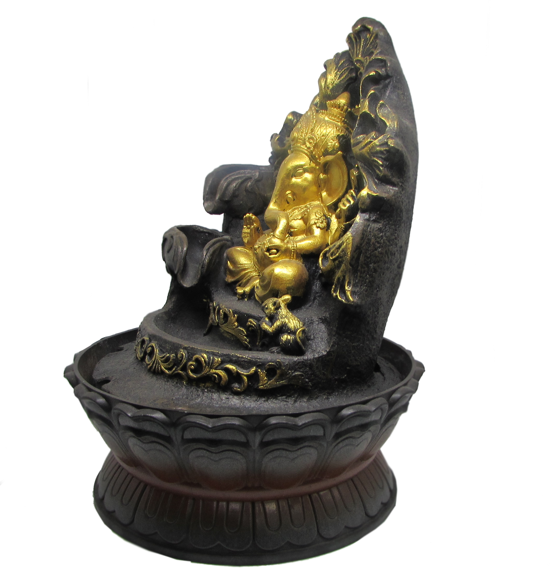 -Fuente de Buda, decoración feng shui, color gris, incluye motor y esfera luminosa.